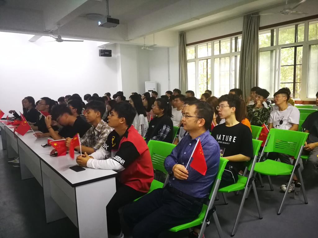 2019年10月1日,艺术与传媒学院组织假期留校学生集中观看庆祝中华人民共和国成立70周年大会和阅兵式,艺术与传媒学院党委书记周著、辅导员组长张晓宾与学生一同观看了现场直播。