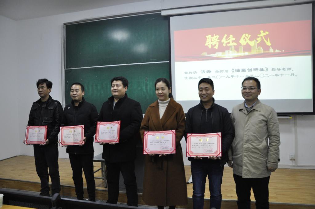 艺术与传媒学院大学生艺术创作与研究中心成立于2015年,下属有五个社团,在过去的时间里,部分社团活动组织不到位,无明确活动规划,社团的发展遇到了极大的困难与发展瓶颈。今年,在学院党委书记周著老师的亲自指导下,经过广泛讨论、研究、整合,在原来社团的基础上成立了设计创新训练中心,书法研究社,摄影艺术工作部,动漫艺术创研中心,油画创研社新五大社团,并专门聘请了相关专业教师全程指导。分别聘任张斌、谢经纬、牛似宝、张耘、黄怡梅、洪涛为指导老师,院党委书记周著为指导老师颁发聘书并讲话,周书记就目前社团发展情况、今后安排、具体要求进行了说明,并鼓励同学们积极配合指导老师的工作,根据各社团相关计划,开展相关活动,形成品牌效应,从而提升我们学生的创作能力。