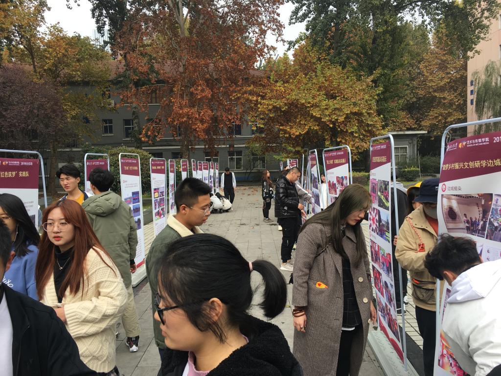 11月8日,艺术与传媒学院在金花校区喷泉广场举办2019年暑期社会实践风采展。此次展览共展出16支实践队基本情况及其实践的成果,一并展出的也包括各队实践成果的实物作品,西安工程大学校团委副书记凌旭、学院党委书记周著、办公室主任王光奎、动画系主任祝瑜、全体辅导员参观了此次展览。