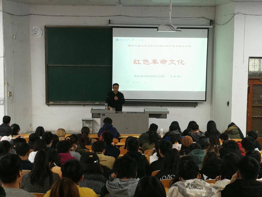 2019年11月19日,艺术与传媒学院在金花校区教4-118举办“文化素养大讲堂”第二讲“红色革命文化”,学院特邀我们马克思主义学院近现代史教研室主任程森副教授作题为《从关中精神到照金精神——中国革命的陕西道路》的报告,学院辅导员组长张晓宾主持报告会,全体辅导员和200余名学生聆听了报告。