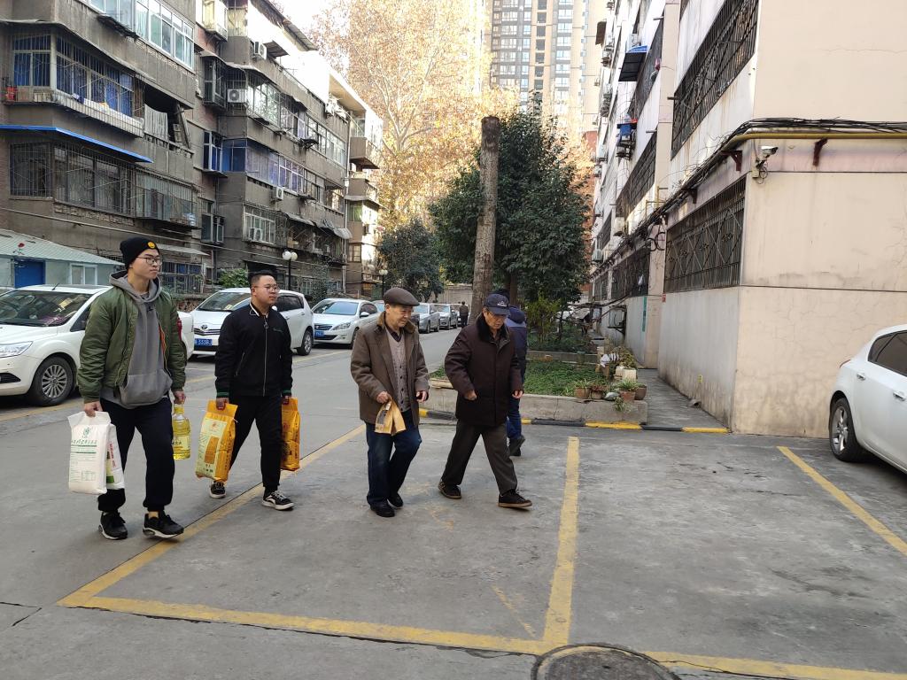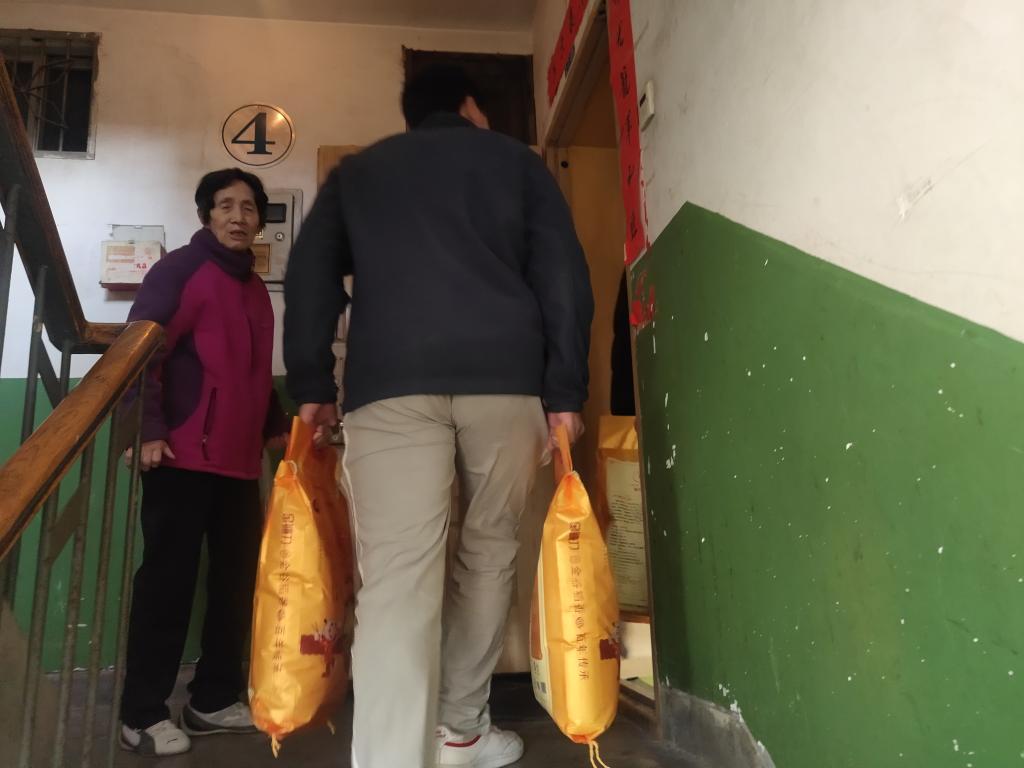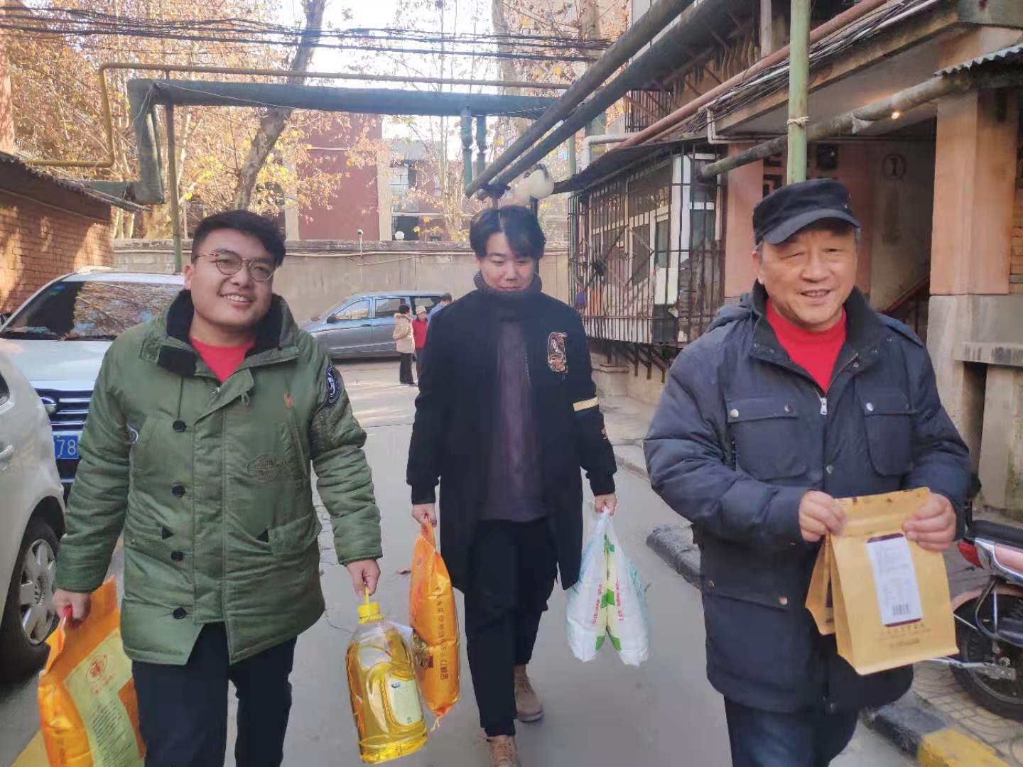 上午10点,大学生志愿者来到家属院,在与离退休工作处老师对接后分成若干小组,每一组分别负责一栋楼,与楼长对接后,协助发放年终福利,并帮助退休职工将福利搬到家中,与离退休老师亲切交流,询问还有什么能帮着做的,离退休教师也给同学们讲了他们退休前的从教往事。