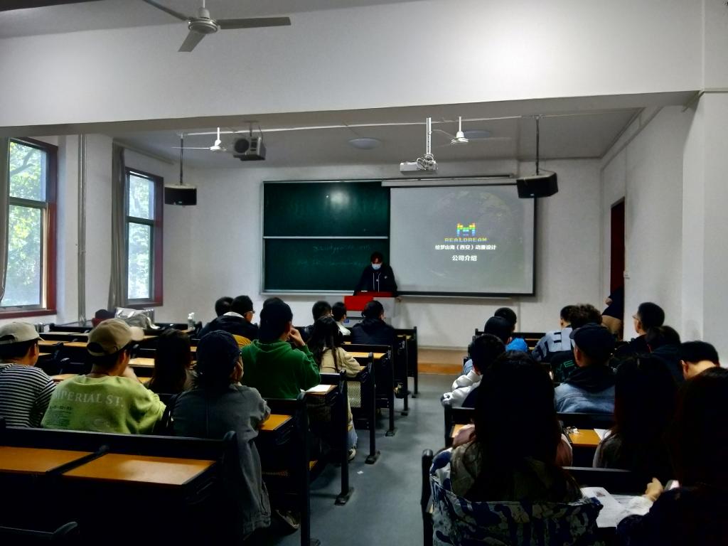 会上,绘梦山海动漫公司负责人首先向同学们介绍了公司情况,并分析了该行业接下来几年的发展趋势;随后公司负责人向同学们介绍了招聘的岗位信息及招聘要求,并回答了同学们的关于求职的相关问题,收取了有意向的同学们的简历并与他们进行了简短的沟通。