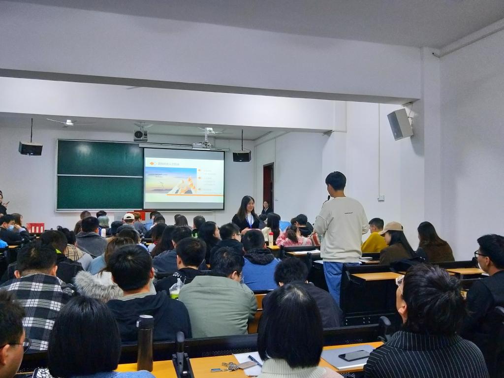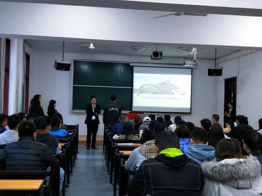 会上,欧派集团西安公司人力资源部郭经理首先对欧派集团做了简要介绍,向同学们介绍了西安公司的发展、团队、具体业务等各方面情况。接着郭经理对公司招聘岗位、校招流程、工作流程、发展平台等做了详细说明,还向同学们展示了公司的福利待遇、团建文化、员工关怀等。互动环节上欧派公司工作人员为踊跃回答问题的同学发送了礼物,往届应聘到该公司工作的校友也回答了同学们