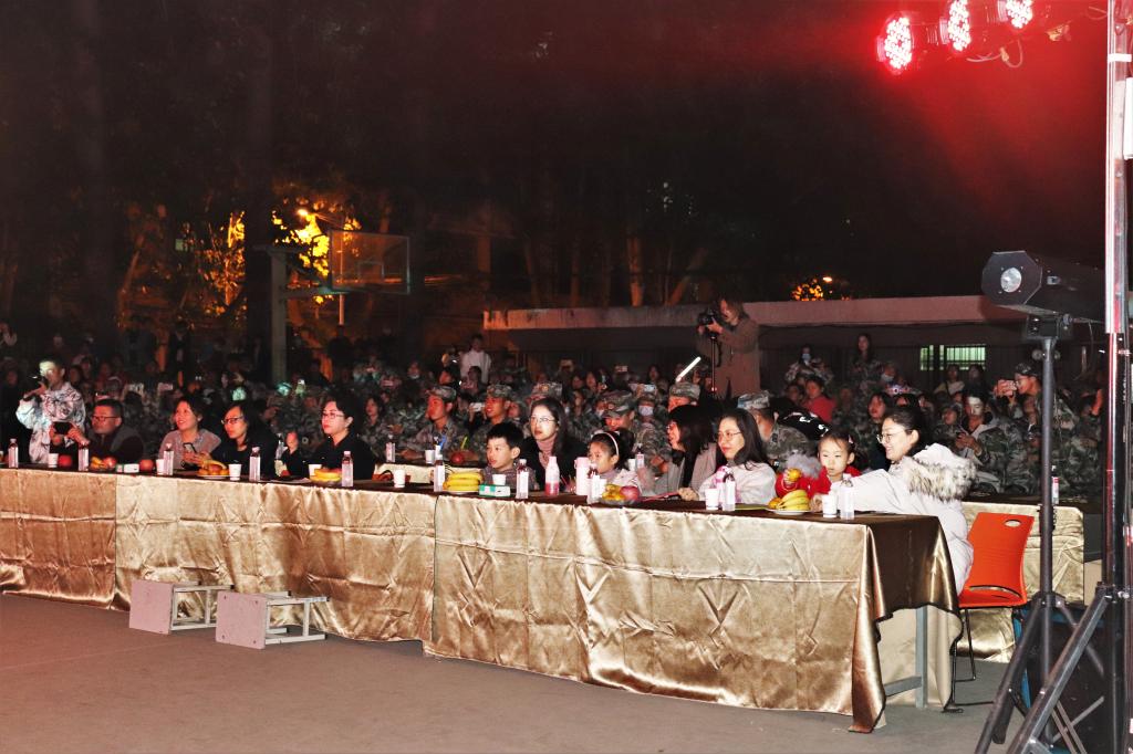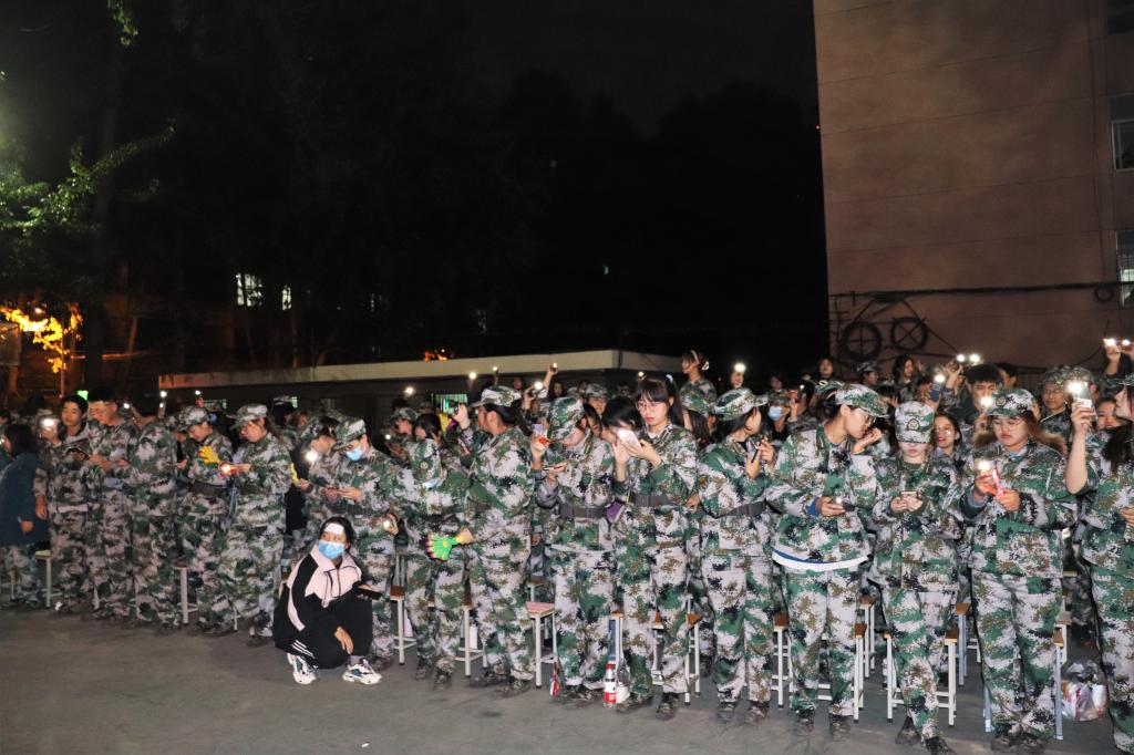 晚会开始前军训连队进行了各连队拉歌比赛,现场打碟表演,为本台晚会奠定了良好的现场氛围。一组动感十足的舞蹈拉开了晚会的序幕,引起了观众阵阵惊叹和雷鸣掌声。浪漫的男女对唱、精彩的歌舞串烧,充分展现了当代大学生的年轻与活力。趣味十足的相声,神秘莫测的魔术将晚会现场气氛推向高潮,晚会最终在教官们响亮的歌声里落下帷幕。领导、老师和演职人员合影留念,为此次的晚会画上了圆满的句号。