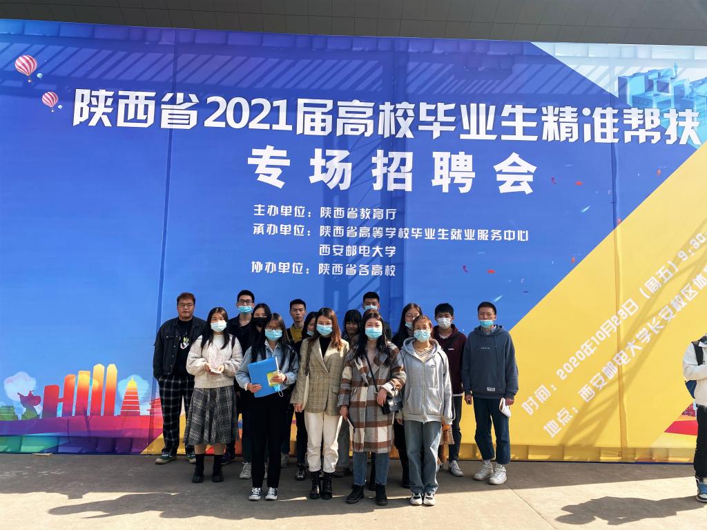 10月23日上午,我院2021届20余名建档立卡家庭毕业生参加由陕西省教育厅在西安邮电大学长安校区举办的陕西省困难群体高校毕业生精准帮扶专场招聘会。