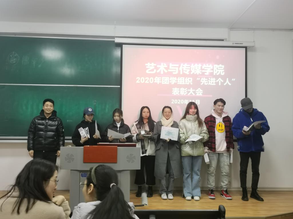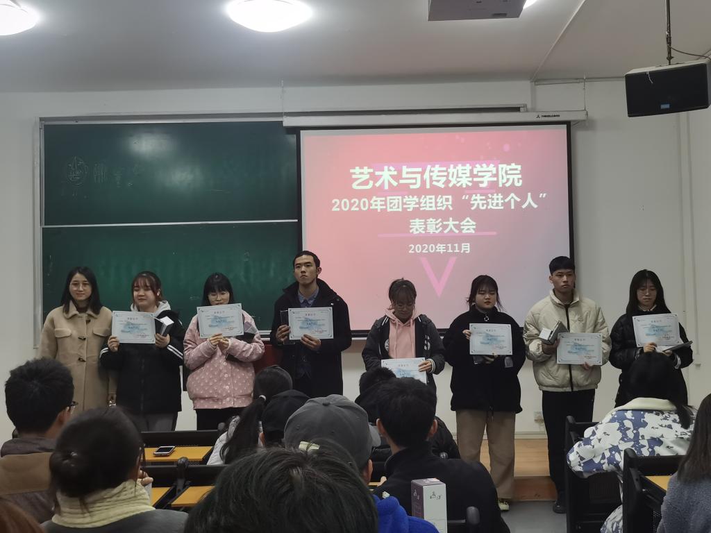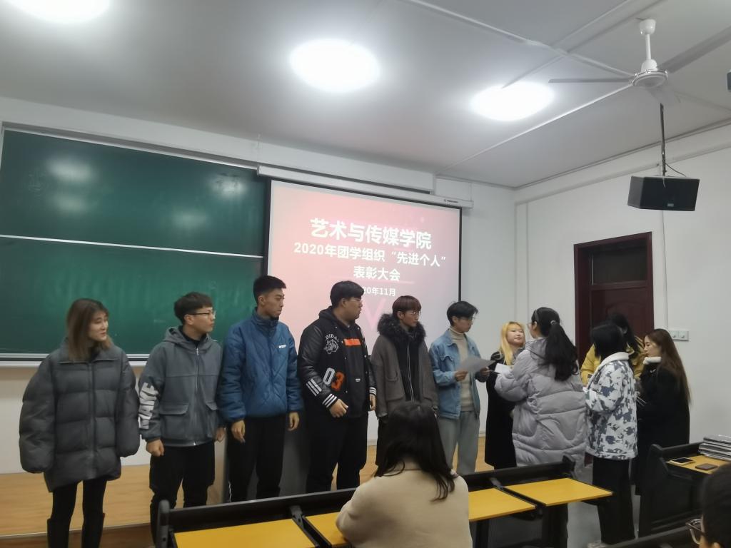 2020年11月30日,艺术与传媒学院团学组织“先进个人”表彰大会在教2-207教室召开。会议由团委刘丹主持,学院辅导员孙雅茹老师、黄怡梅老师、学院团委书记洪涛老师出席会议,团学组织代表、受表彰人员80余人参加了此次表彰大会。