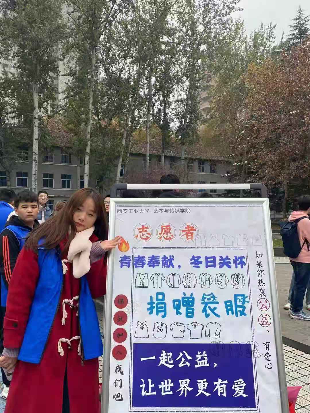 为培养学生的爱心公益意识,弘扬中华民族优良传统,增强学生们参与社会、关心社会的责任感。我们于2020年11月27日至30日在金花校区喷泉广场开展了“青春奉献 冬日关怀”暖冬捐衣活动,此次活动由院阳光蒲公英志愿者协会主办。
