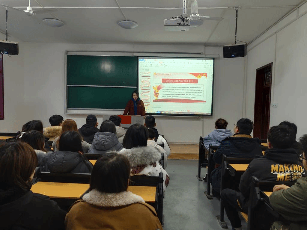 为贯彻落实依法治国理念,落实普法宣传教育,12月4日上午,2018级开展了“弘扬宪法精神,建设法治中国”法制宣传主题活动。此次活动由2018级辅导员孙雅茹组织,2018级全体同学参加。