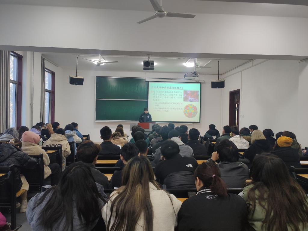 首先,杨老师强调了考风考纪的重要性,提醒同学们严格遵守考场纪律,端正考试态度,就即将进行的四六级考试及期末考试有关注意事项向全体学生做了具体说明,让全体学生深刻认识到考试作弊后果的严重性,认真诚信就考。同时督促同学们继续按时做好晨午检打卡,严格按照学校疫情防控要求,做好个人防护,积极参加体育锻炼,注重个人身体健康。其次,杨老师通过PPT演示及讲解,使同学们加深了对诺如病毒的传播途径、个人预防措施等方面的了解,特别强调,要保持宿舍教室卫生,做好冬季传染病防控工作。最后,杨老师警示同学们,一定要注意冬季用电安全及个人人身财产安全。