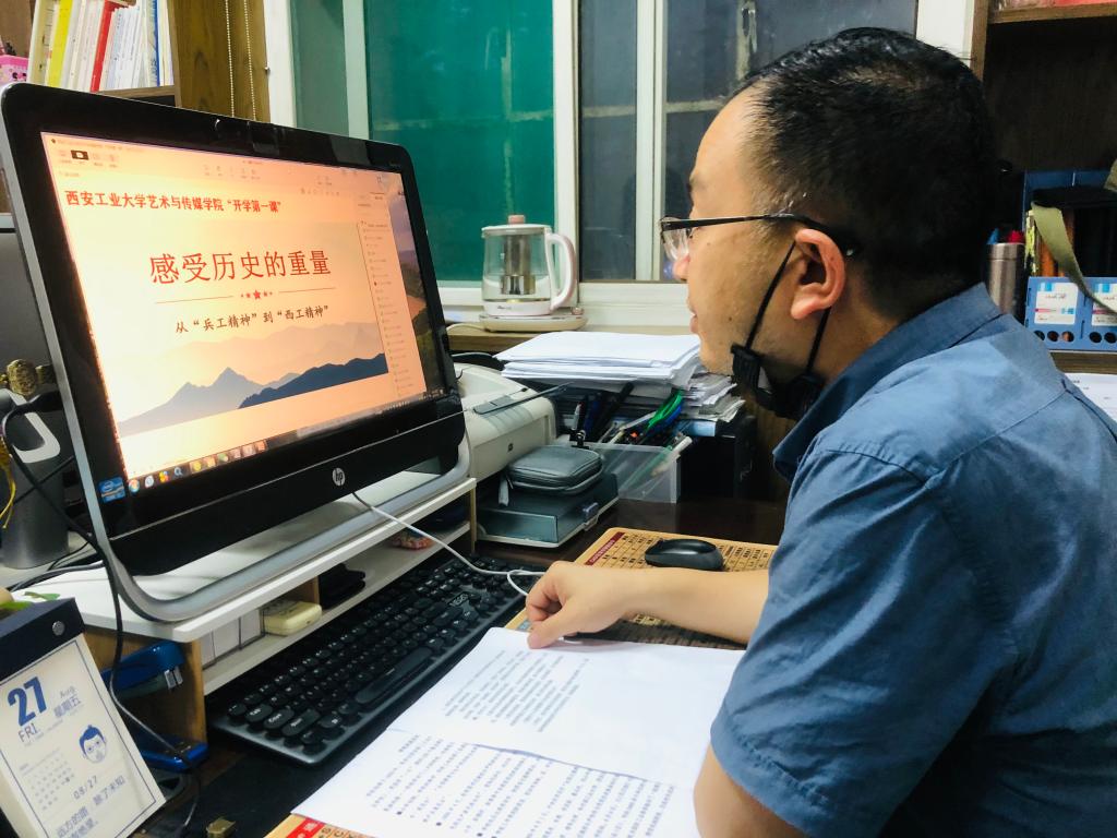 831日晚7:00学院党委书记周著、辅导员组长张晓宾为全体学生学生干部、学生党员上了主题为“感受历史的重量—从兵工精神到西工精神”的“开学第一课”,全体辅导员也参加了学习。周著书记在讲课最后要求大家:坚定共产主义理想信念、关注时事政治、端正学习生活态度,将个人价值融入到实现社会价值中去。