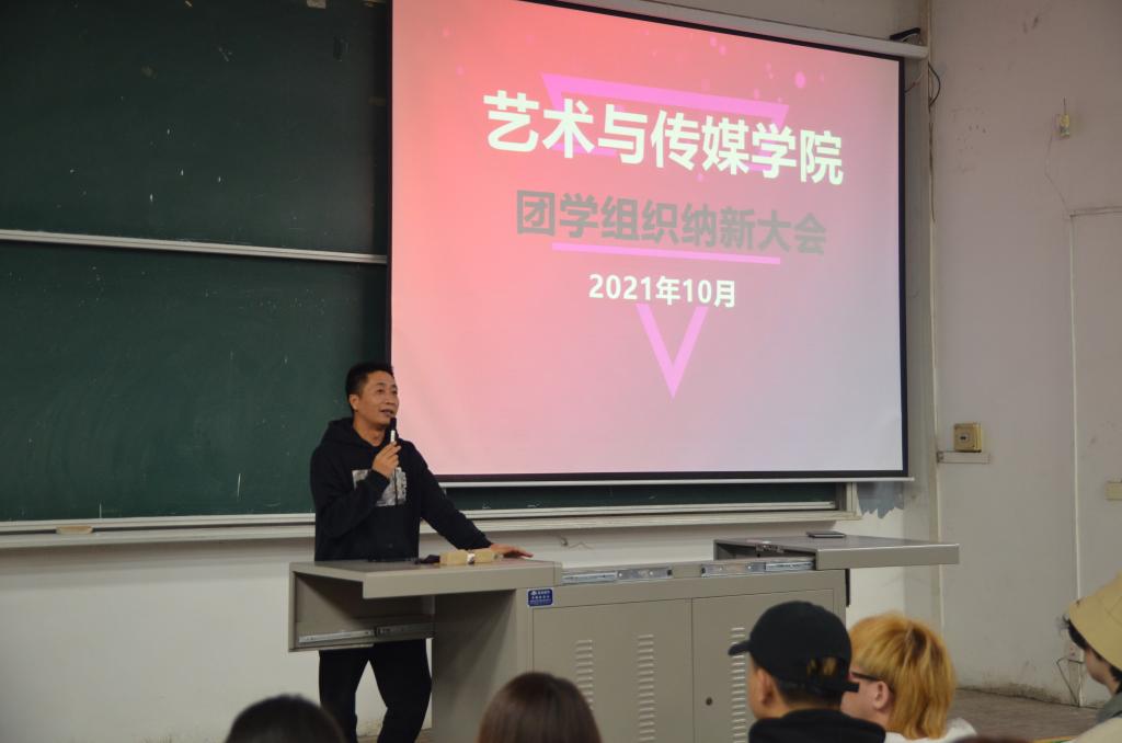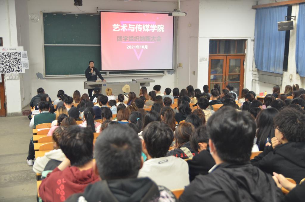 2021年10月8日下午19时,伟德国际1946官方网艺术与传媒学院团学组织纳新大会在J4-219举行。学院团委书记杨娜娜以及学院前任团委书记、2021级辅导员洪涛老师出席纳新大会。