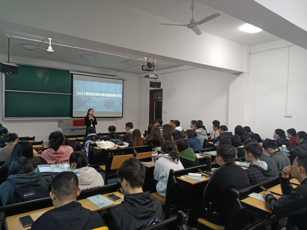 2021年10月15日上午,欧派家居在我们J2-207教室成功举行专场招聘会,招聘会由2022届辅导员孙雅茹组织,我们2022届80余名学生参加了招聘会。