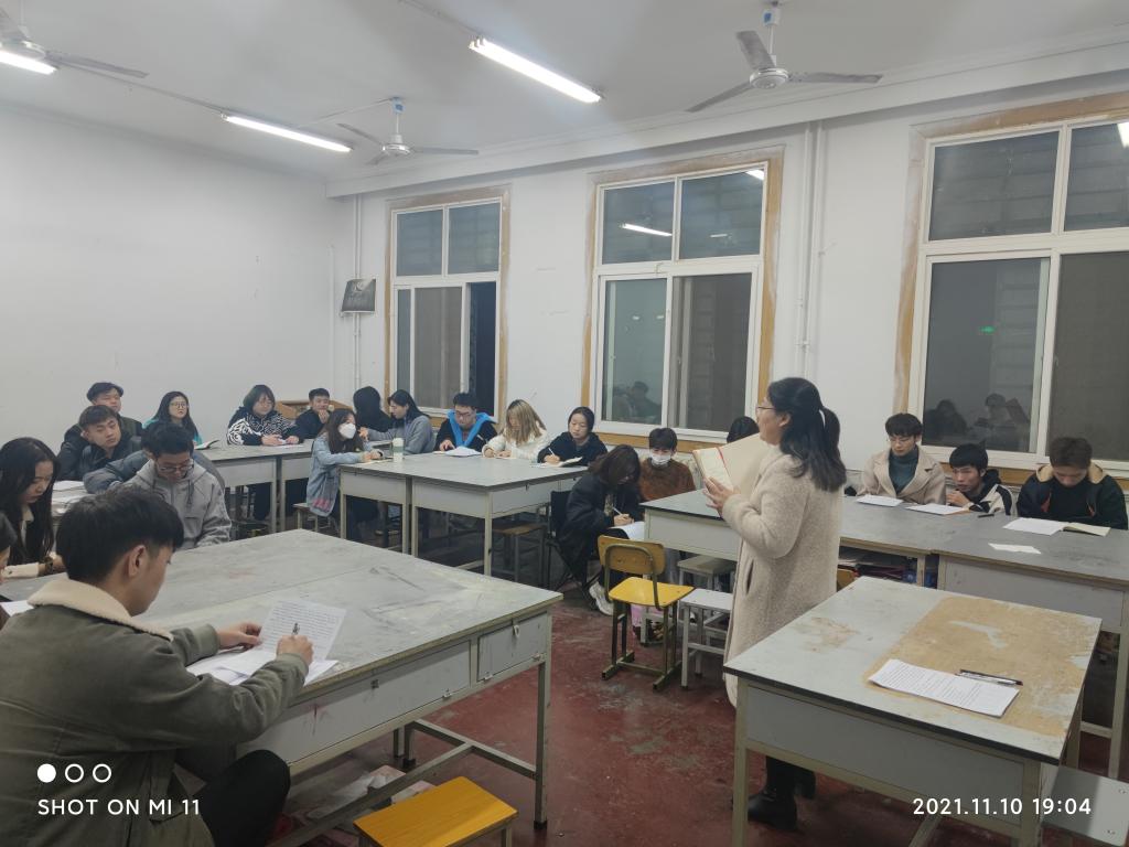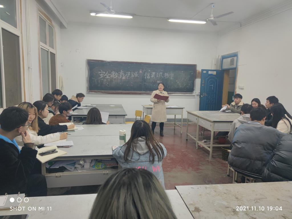 2021年11月10日在行政楼201教室。2020级开展“安全教育及诚信考试教育大会”。辅导员张秀丽老师主持,2020级全体班干部参加大会。
