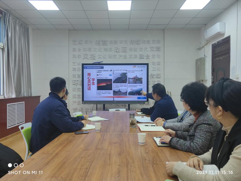 2021年11月11日下午2:00在教2-202,我们光电工程学院党委书记周顺、副书记杨丽红一行莅临我们进行工作交流。我们党委书记周著,党委副书记张晓宾,金娜老师及辅导员组长孙雅茹、团委书记杨娜娜参加了此次交流。