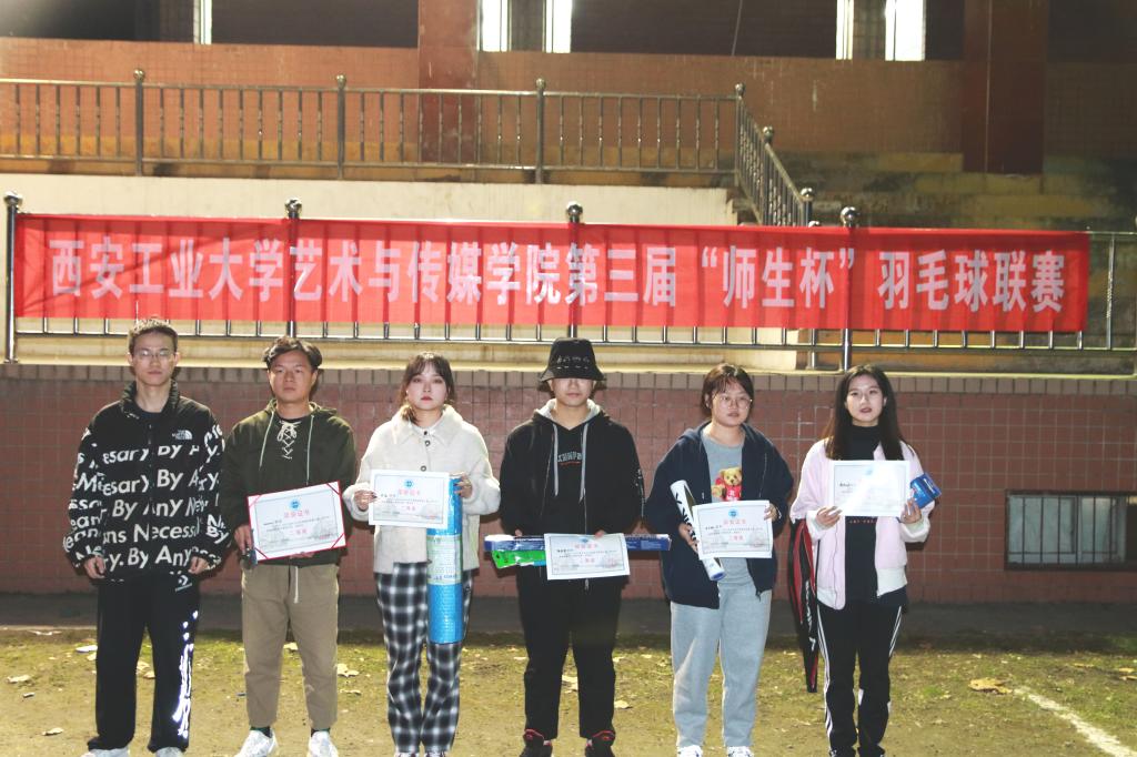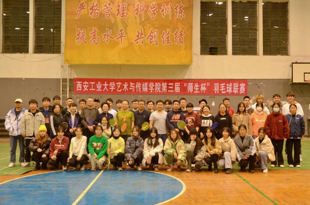 2021年11月15日18:00,艺术与传媒学院举办第三届“师生杯”羽毛球联赛-师生友谊赛暨闭幕式。党委书记周著、党委副书记张晓宾、团委书记杨娜娜等7名教师及全体参赛学生参加了本次活动。