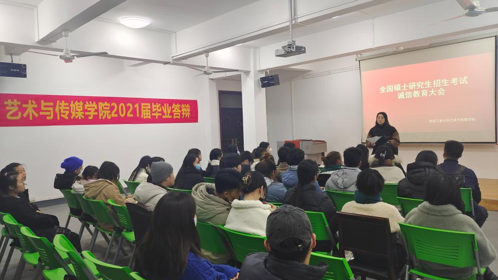 为端正考风,严肃考纪,教育引导全体学生诚信考试,12月15日下午,艺术与传媒学院2018级在X-309召开2022年全国硕士生招生考试诚信教育大会,会议由2022届毕业班辅导员孙雅茹主持,2022届考研学生参加了此次大会。