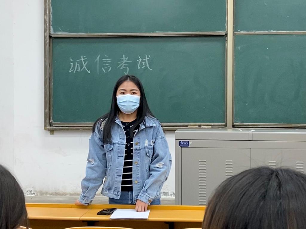 会上,董丹丹向全体同学强调:面对接下来的考试,要积极准备,认真复习,严守考试纪律、坚持诚信考试、杜绝考试作弊,任何时候不要存侥幸心理。并通过警示教育,向同学们再次说明了考试作弊的危害与严重性。同时,提醒同学们考试过程中全程佩戴口罩,服从防疫相关要求。会后,同学们认真阅读了“诚信考试承诺书”相关条款并自愿签字确认。