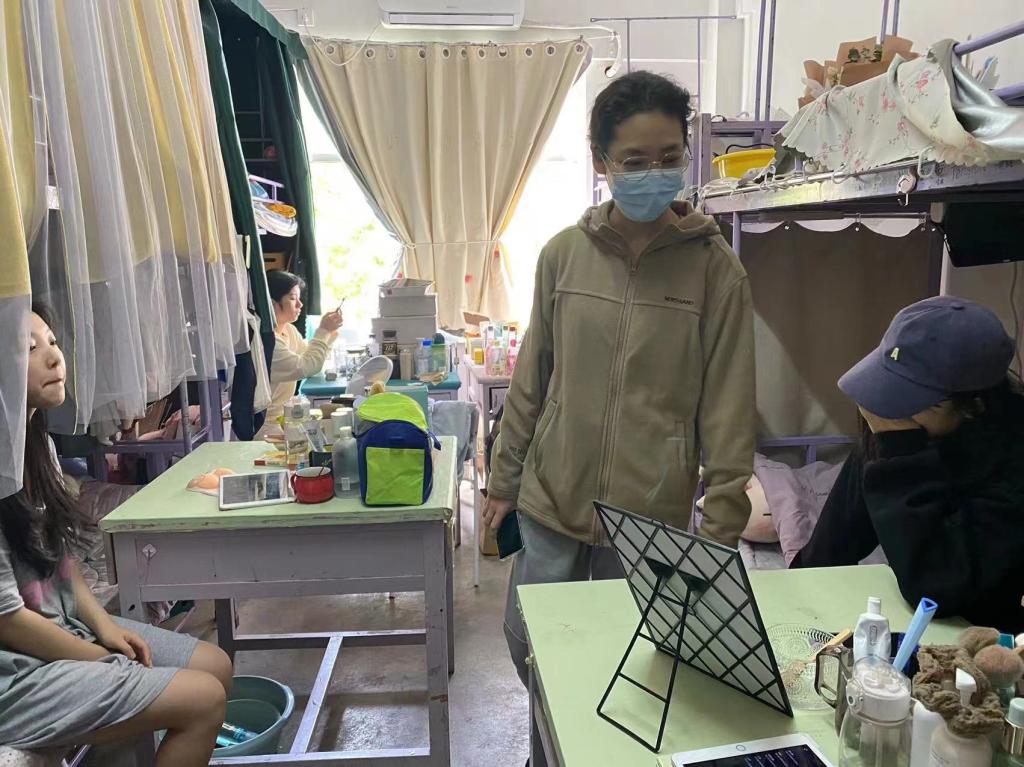 根据学校疫情防控工作要求,在学院的统一组织安排下,艺术与传媒学院党委副书记张晓宾和各年级辅导员于4月18日走访学生公寓。