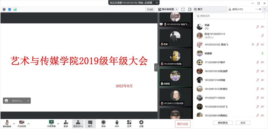 为做好学生返校工作,加强毕业生思想教育,为毕业生指明就业方向。艺术与传媒学院2019级辅导员杨娜娜于9月5日晚19:30通过腾讯会议召开年级大会。2019级全体学生参加会议。