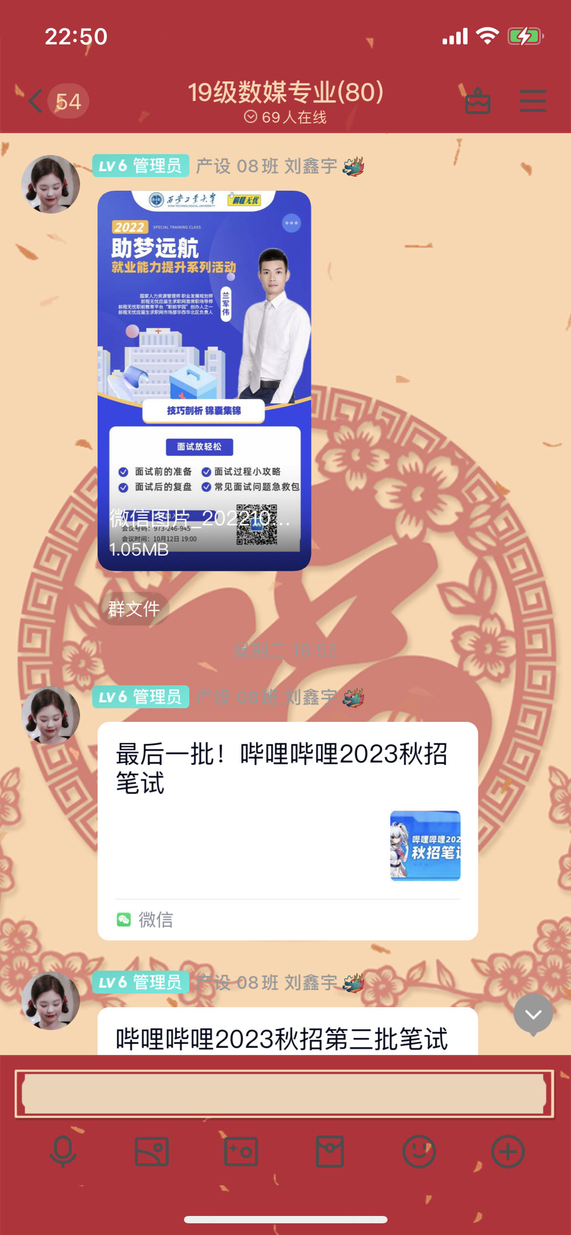 强化多方联动,跟进“组合拳”。一是选聘年级就业大使2名,建立就业工作QQ群及考研加油群,学生就业大使每天搜集整理相关招聘信息,第一时间在群内推送,帮助毕业生了解更多企业招聘情况,更加直观地进行企业选择;及时提醒同学们关注企业线上宣讲会时间,督促同学们积极应聘,把握良机。针对考研同学,就业大使每天发布考研小贴士及考研信息咨询,持续搜集同学们备考过程中的各种困难和问题,做到一周一总结,一周一反馈,及时解决同学们的急难愁盼。二是充分发挥专业课教师及学业导师的作用,形成两周一次例会制度,分析研判就业形势,深入了解学生就业动态,共同促进学生更快更好就业。三是与学生家长沟通常态化,了解家庭环境对学生就业方向的影响,争取家长的支持与配合,形成就业合力。
