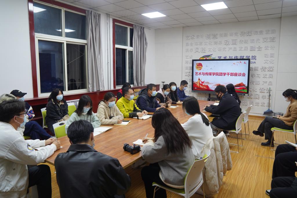 为进一步落实学院关于疫情防控的各项工作部署,动员全体干部进一步担当履职。11月27日,艺术与传媒学院组织开展团学干部座谈会。艺术与传媒学院党委书记周著、党委副书记张晓宾、辅导员组长孙雅茹、团委书记杨娜娜、团委副书记董丹丹及19名团学干部代表参加了本次会议。