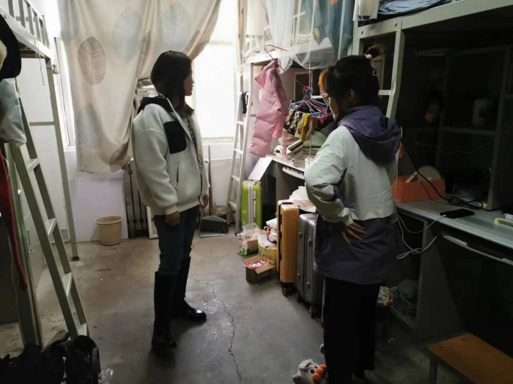 在走访过程中,辅导员们详细询问大家目前遇到的各种问题和困难,并给出有效的建议,用心用情用力解决学生的困难事和烦心事,落实“我为学生办实事”的思想。随后各年级辅导员就公寓文化建设,对各公寓学生提出相应的建议及意见,鼓励学生从小事做起,从个人和宿舍的卫生建设做起,积极带动学生营造积极向上的学生寝室文化氛围和良好的公寓育人环境,叮嘱大家每天保持寝室清洁卫生,多通风,勤倒垃圾,做好相关消杀工作。最后对学生宿舍存在的卫生问题以及安全隐患进行了逐一排查,并现场督促进行整改。