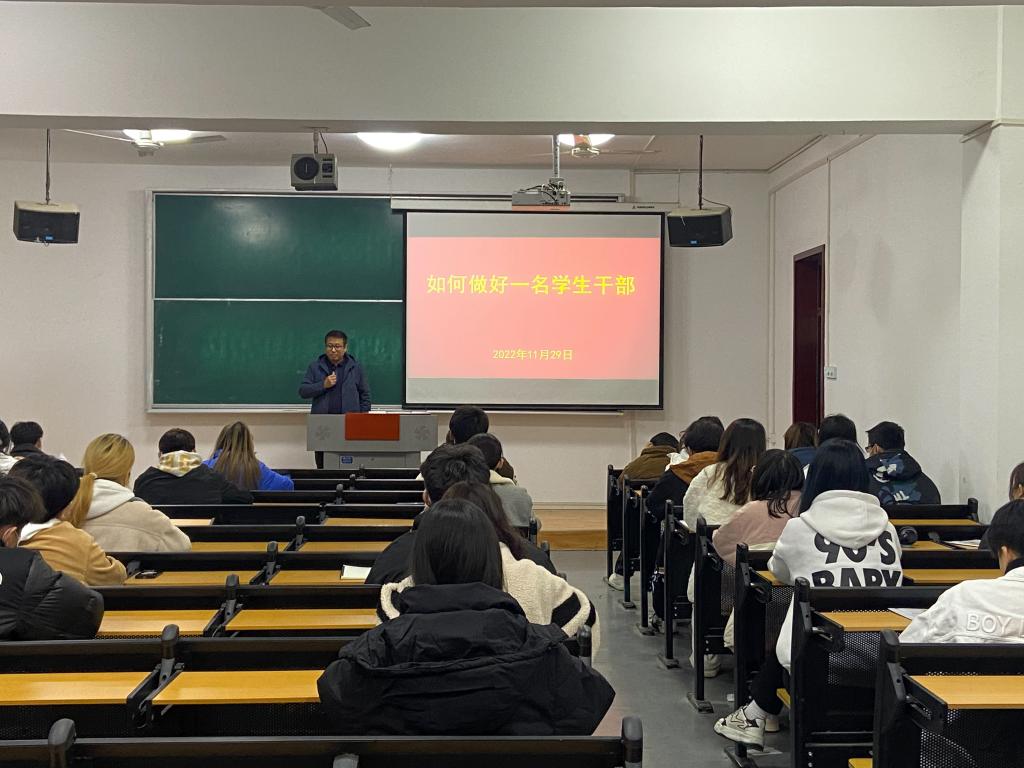 张晓宾以“如何做好一名学生干部”为主题,从四方面进行讲解:第一,正确认知学生干部。明确成为学生干部的前提是做好一名普通学生,其次才是一名干部,先奉献后成果,要有集体荣誉感及站位意识。第二,学会做事。要善学习、多思考、勤动手。第三,学会处理突发事件。主动作为、快速反应、迅速处理。第四,自我管理。管理好自己的情绪,言行举止,网络空间。最后,张晓宾寄语各位学员:要听党话、跟党走,认真学习党的科学理论,深刻理解党的初心使命,立志做有理想、敢担当、能吃苦、肯奋斗的新时代好青年。