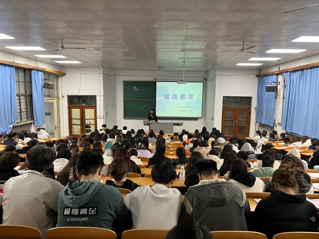 为严肃考风考纪,加强学风建设,营造良好的诚信之风,提高广大同学对考试作弊严重性的认识,营造一个公平竞争的良好氛围,真正树立良好的学风和考风,顺利完成期末考试课程。3月1日,2022级在金花校区教4—118召开诚信教育大会,辅导员洪涛主持会议,2022级全体学生参加此次会议。