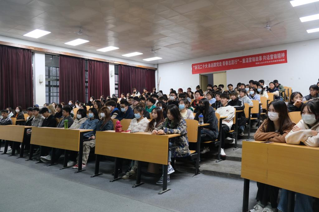 为贯彻落实习近平总书记对深入开展学雷锋活动作出的重要指示精神,深刻把握雷锋精神的时代内涵,引导广大团员青年践行社会主义核心价值观,艺术与传媒学院于3月2日在5F-J1举办“学习二十大 永远跟党走 青春志愿行”——重温雷锋故事 共话雷锋精神 观影活动。学院院180余名学生积极参与观看,并发表感言。