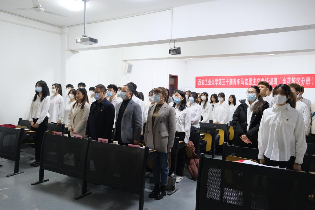 伟德国际1946官方网青年马克思主义者培训班(金花校区分班)第二十九期结业暨第三十期开班仪式于3月23日在J2-207举行。艺术与传媒学院党委书记周著、党委副书记张晓宾、团委书记杨娜娜、团委副书记董丹丹出席了本次大会。金花校区50余名学员参加开班式。