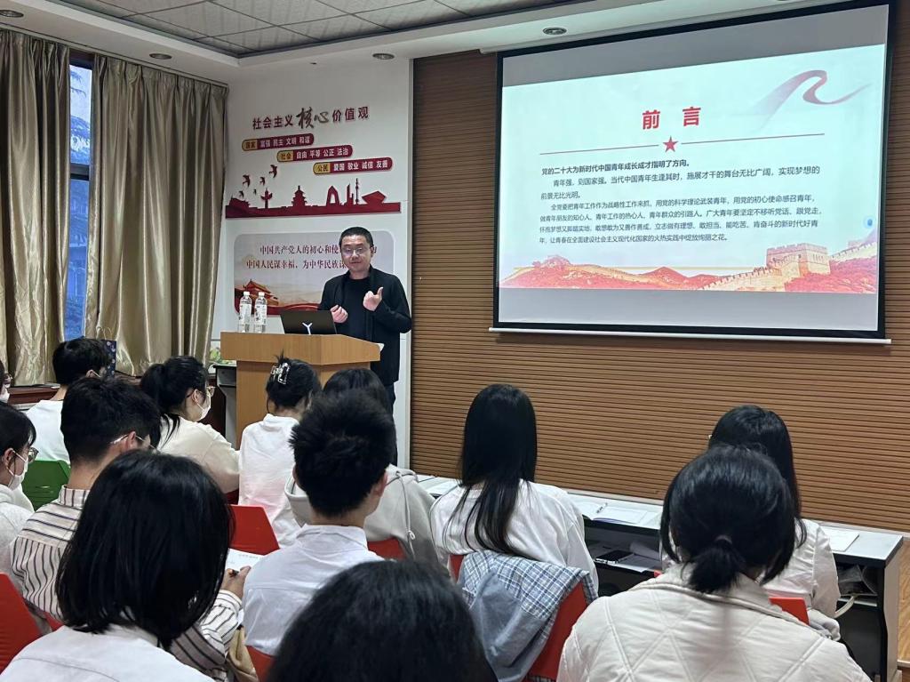 为深入学习贯彻党的二十大精神,选拔和培养出一批“政治坚定、素质全面、模范表率、堪当重任”青年马克思主义者,伟德国际1946官方网第三十期青年马克思主义者培训班(金花校区分班)第一次理论授课于3月30日开讲,首次授课由伟德国际1946官方网团委副书记牛迎宾主讲,金花校区40余名学员参加。
