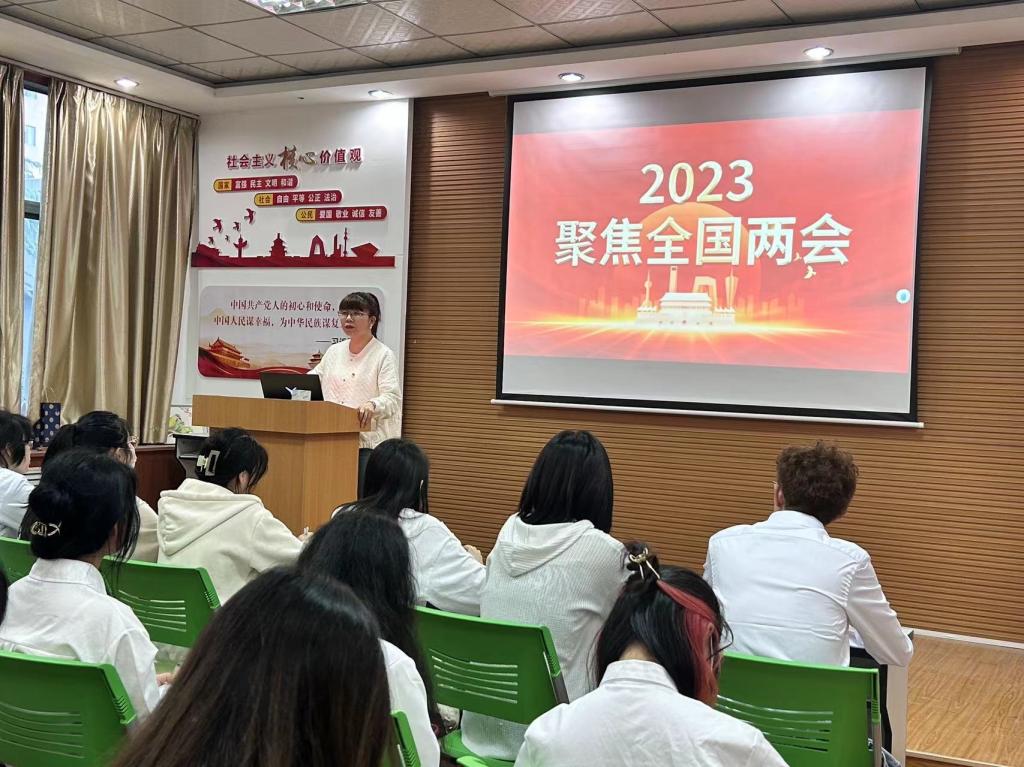 本次授课杨娜娜以“聚焦2023全国两会”为主题,从“两会知识科普”、“全国两会常用词”、“2023年全国两会内容”、“两会新看点”、“政府工作报告简版”五个部分进行解读,将两会的内涵、两会关键词的内容与区别、经济政治民生方面新举措等进行了详细讲解。杨娜娜强调,全国两会不仅是汇聚众智、凝聚共识、集聚众力的平台,更是体现人民当家作主、实现全过程民主的重要途径和窗口。通过两会,青年学生应第一时间认识到党和国家的发展方向和工作要求,更应深刻地感受到新时代青年的责任和担当。