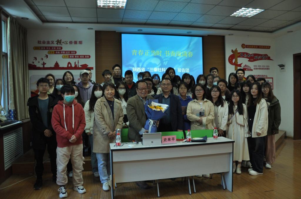 讲座伊始,院党委书记周著为大家介绍了此次讲座的背景和意义,离退休管理处处长周晔介绍了史来平教授履历,学院学生代表为史来平教授献上鲜花。随后史来平教授从习近平论学习和阅读讲起,论述读书、阅读的益处,同时为大家讲述了他年轻时学习以及生活的经历,用自己的经验给大家指引前进的方向,用故事和实例来警醒并告诫同学们学习的重要性,最后他呼吁同学们在青春年华以书香筑梦,实现人生理想,不负时代期许,鼓励同学们树立崇高理想,涵养浩然之气,让青春在书香中绽放。