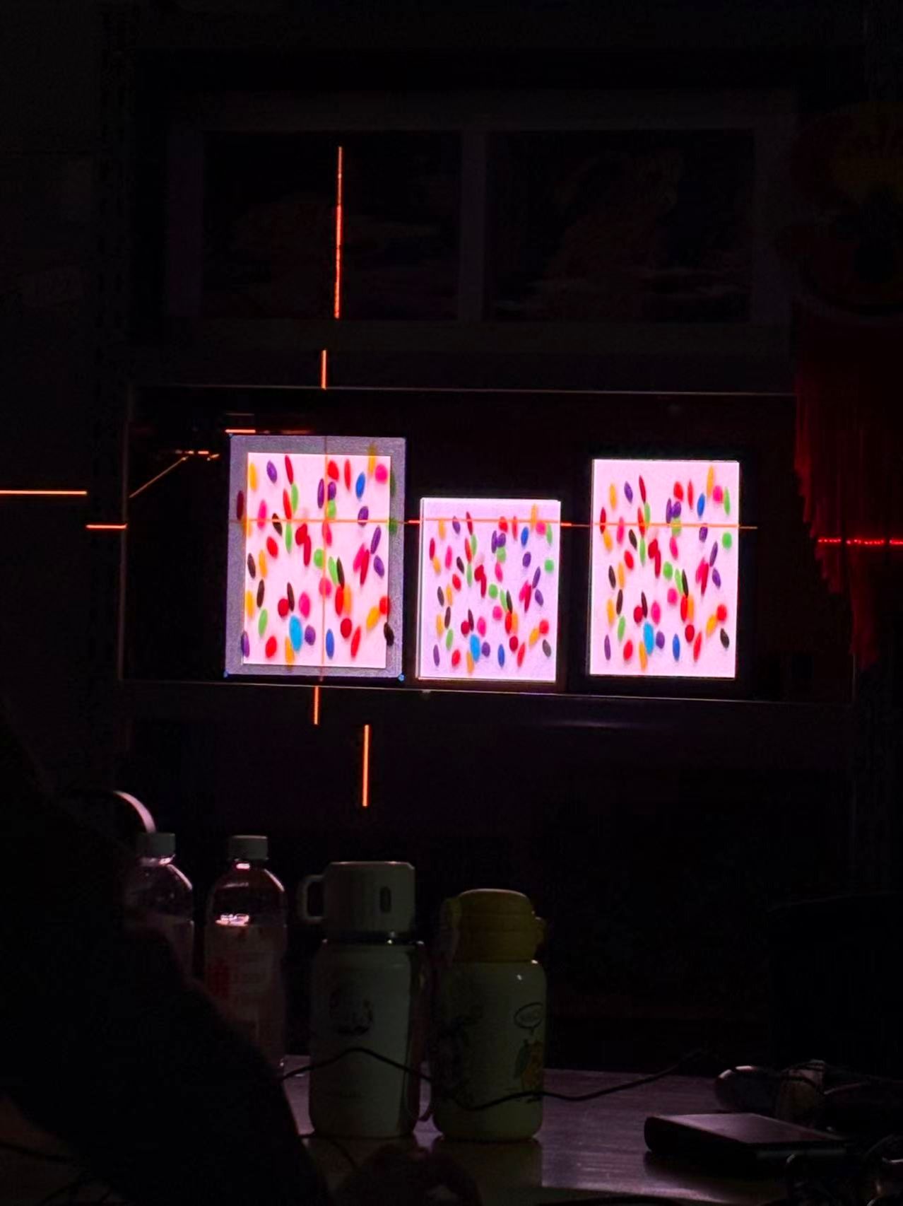 活动中,王舒以“数字艺术与交互技术的融合创新”为切入点,系统讲解了TouchDesigner软件的核心理念与操作逻辑。通过理论阐释与案例演示相结合的方式,她深入剖析了光雕投影技术的原理及其在沉浸式艺术创作中的应用场景。在实践环节,王舒现场指导研究生运用TouchDesigner软件完成基础交互界面搭建,并针对光影效果调试、实时数据可视化等关键技术进行一对一指导。