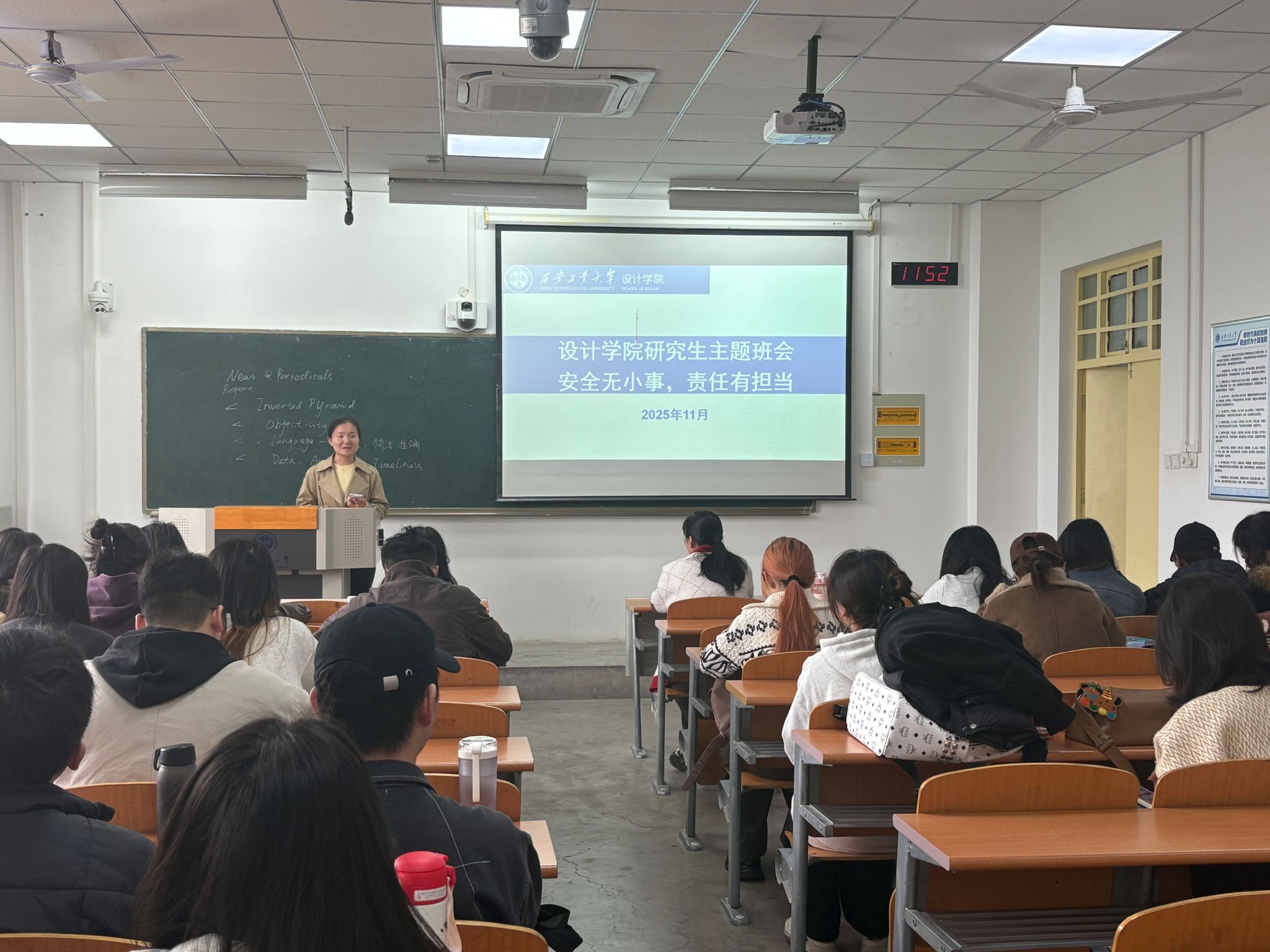 会上,贾宇星结合近期高校安全典型案例,从“人身安全”“财产安全”“心理健康”三个维度切入,通过剖析真实案例,引导学生思考“安全隐患如何预防”“突发事件如何应对”等实际问题,强调安全是研究生学习科研的基础保障。她指出,研究生不仅要追求学术卓越,更需以高度的责任感践行安全规范,这既是对自身发展的负责,也是对校园安全的守护。