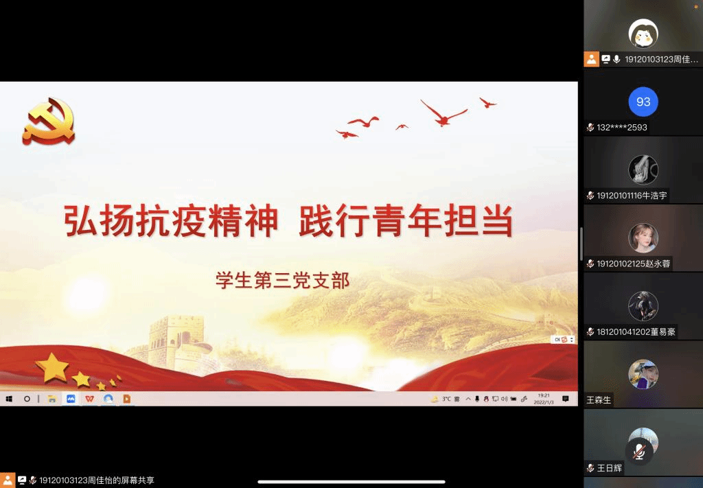 2022年1月5日,开展“弘扬抗疫精神 践行青年担当”活动。在引导各党员树立疫情防控正确认识的同时,培养和提升了全体党员的爱国主义情怀,并通过积极学习抗疫知识,增强了抗疫必胜的信心。