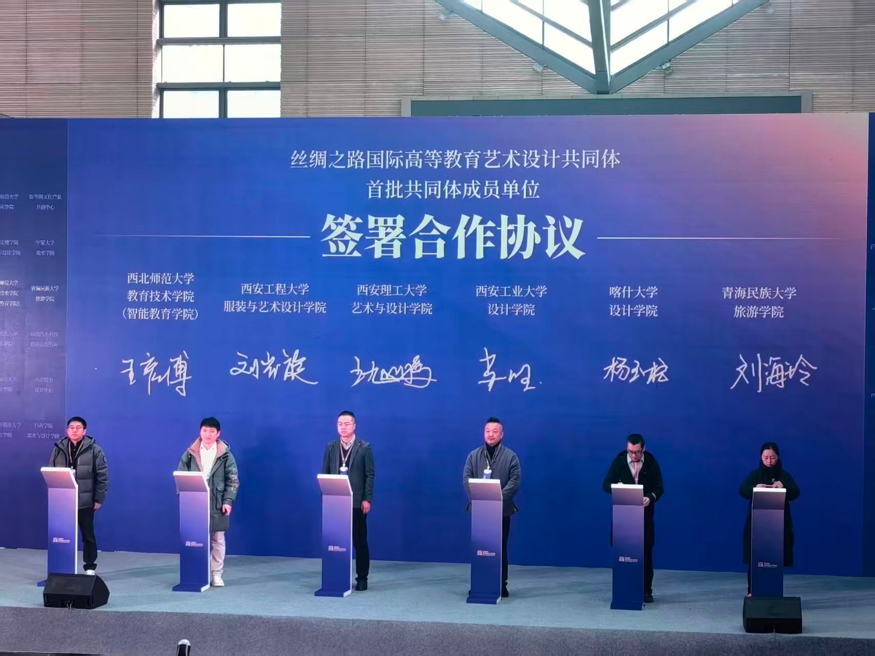 在启幕仪式上,丝绸之路国际高等教育艺术设计共同体正式成立,苏胜代表学院签署首批共同体成员单位合作协议。该共同体旨在搭建一个国际化的艺术设计教育交流与合作平台,促进丝路沿线高校在设计教育、科研创新、人才培养等方面的深度合作与资源共享。