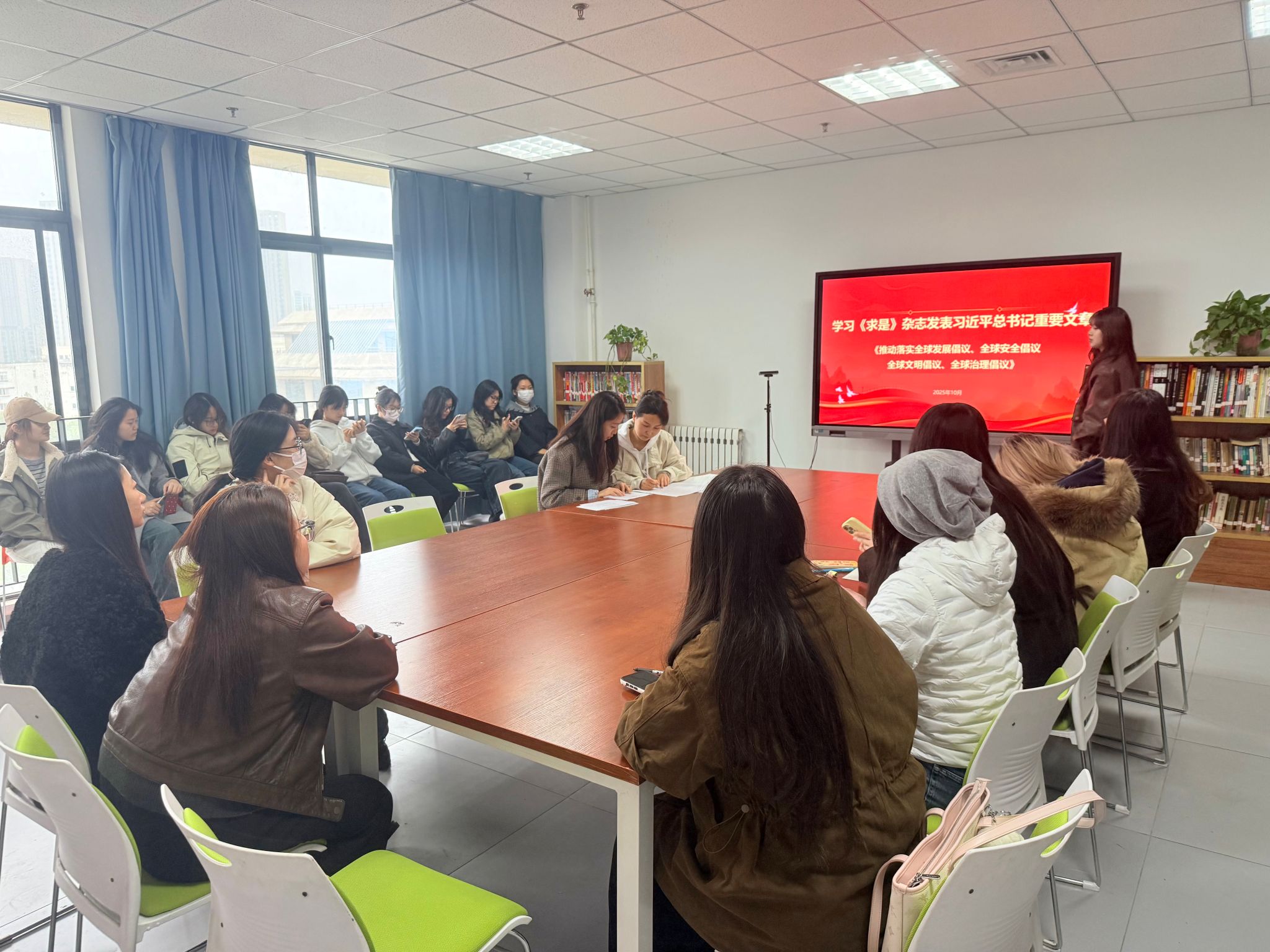 会上学习了《求是》杂志发表习近平总书记重要文章《推动落实全球发展倡议、全球安全倡议、全球文明倡议、全球治理倡议》,文章围绕四大核心内容展开:一是明确发展是实现人民幸福的关键;二是强调安全是发展的前提;三是指出多样文明是世界的本色;四是结合世界反法西斯战争胜利和联合国成立80周年,呼吁铭记历史、共创未来。学习后,党员们结合专业实际交流感悟,进一步凝聚思想共识。