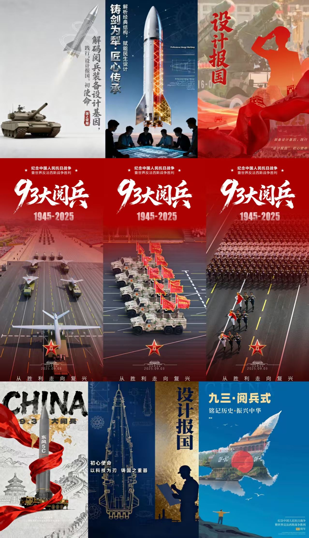 活动主要围绕93阅兵、纪念抗日战争暨世界反法西斯战争胜利80周年等重大活动为创作要素,从设计美学角度解读阅兵仪式,将专业素养与爱国情怀相融合,挖掘其中的视觉符号和象征意义,创作出一系列富有创意的海报作品。