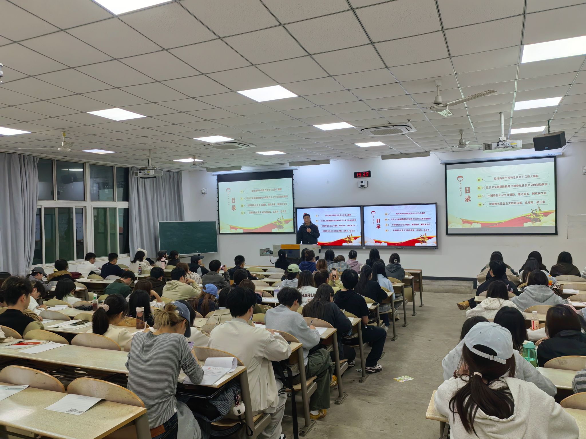 10月15日,学院举办第七十一期入党积极分子培训班理论授课第四讲,学院团委书记、数字媒体艺术本科生党支部书记许金鑫主讲“中国特色社会主义”。