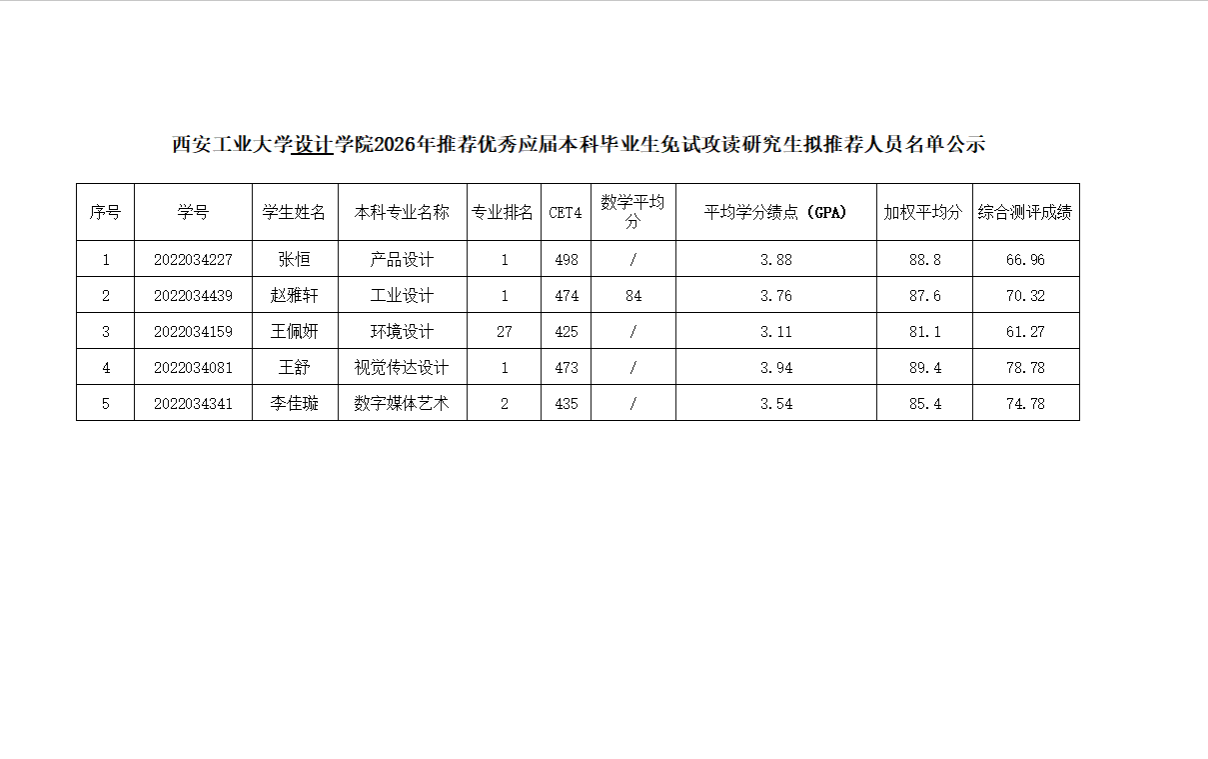伟德国际victor19462026年推荐优秀应届本科毕业生免试攻读研究生拟推荐人员名单公示