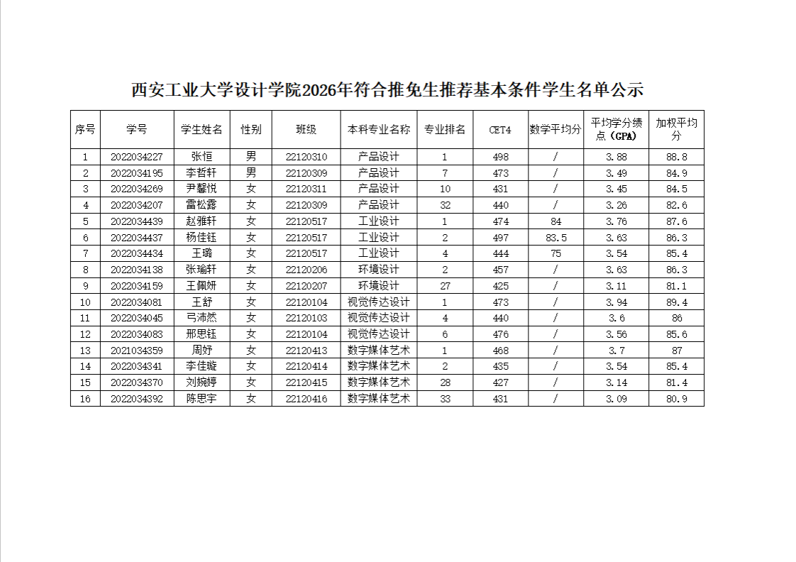 伟德国际victor19462026年符合推免生推荐基本条件学生名单公示
